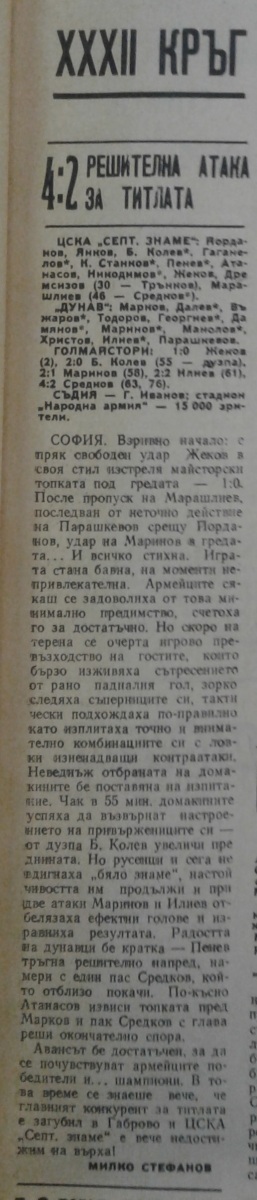«ЦСКА Септемврийско Знаме» София - «Дунав» Русе - 4:2