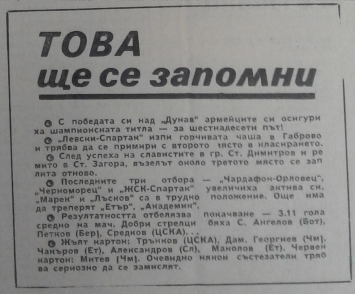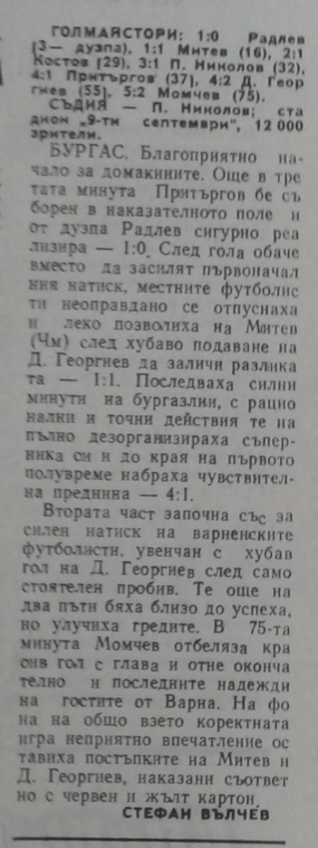 Пею Николов (Черноморец) провёл свой 150-й матч в А РФГ. Веселин Личев (Черно море) провёл свой 200-й матч в А РФГ.