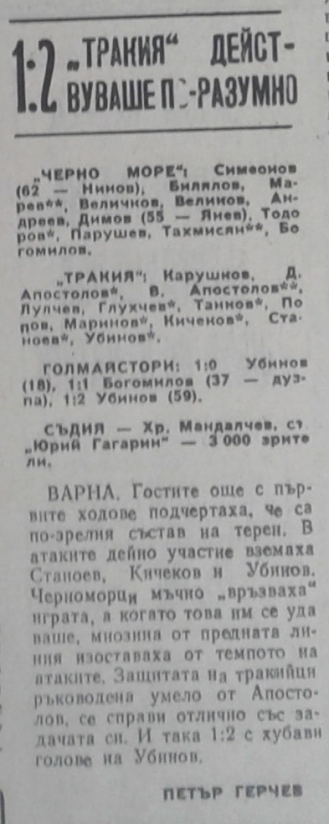 «Черно море» Варна - «Тракия» Пловдив - 1:2