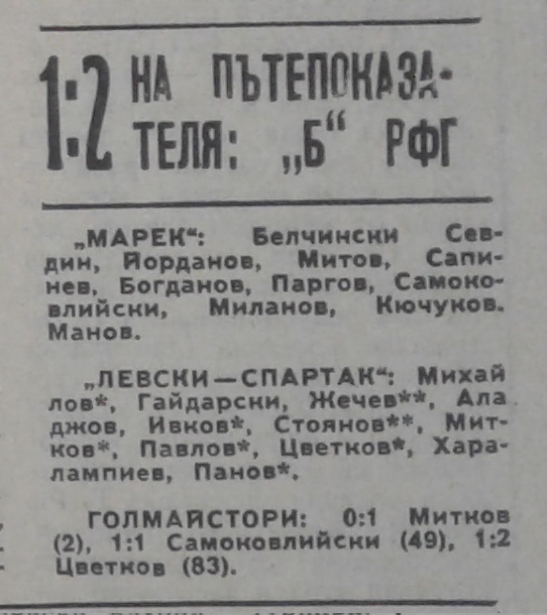 «Марек» Станке-Димитров - «Левски-Спартак» София - 1:2