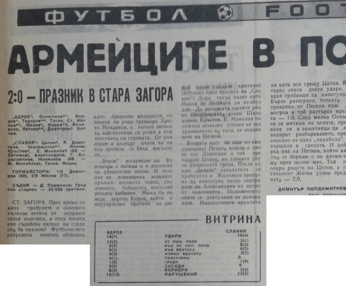 «Берое» Стара-Загора - «Славия» София - 2:0