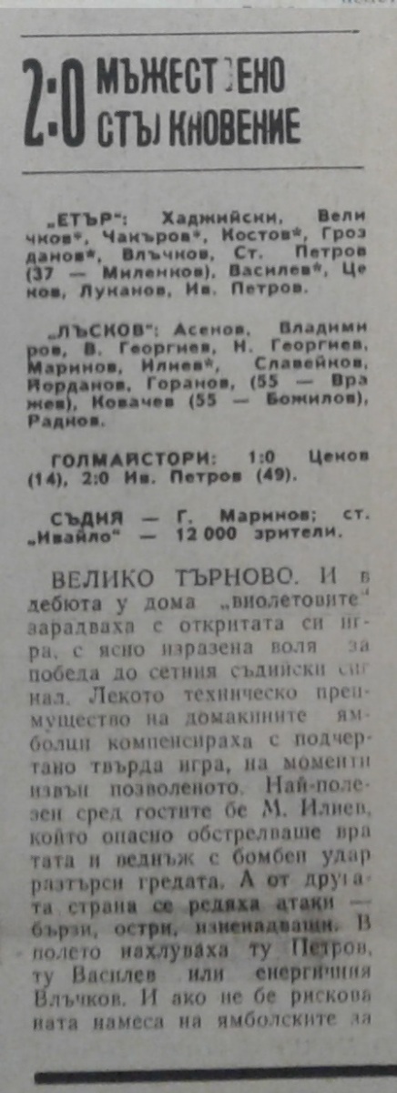 «Этыр» Велико-Тырново - «Николай Лысков» Ямбол - 2:0