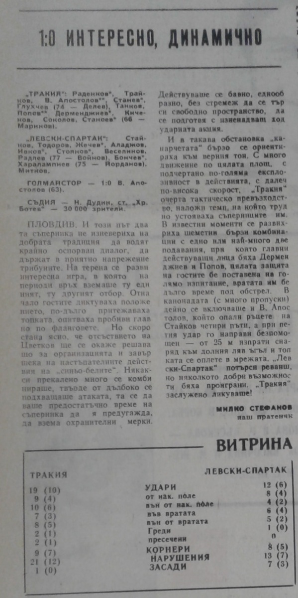 «Тракия» Пловдив - «Левски-Спартак» София - 1:0