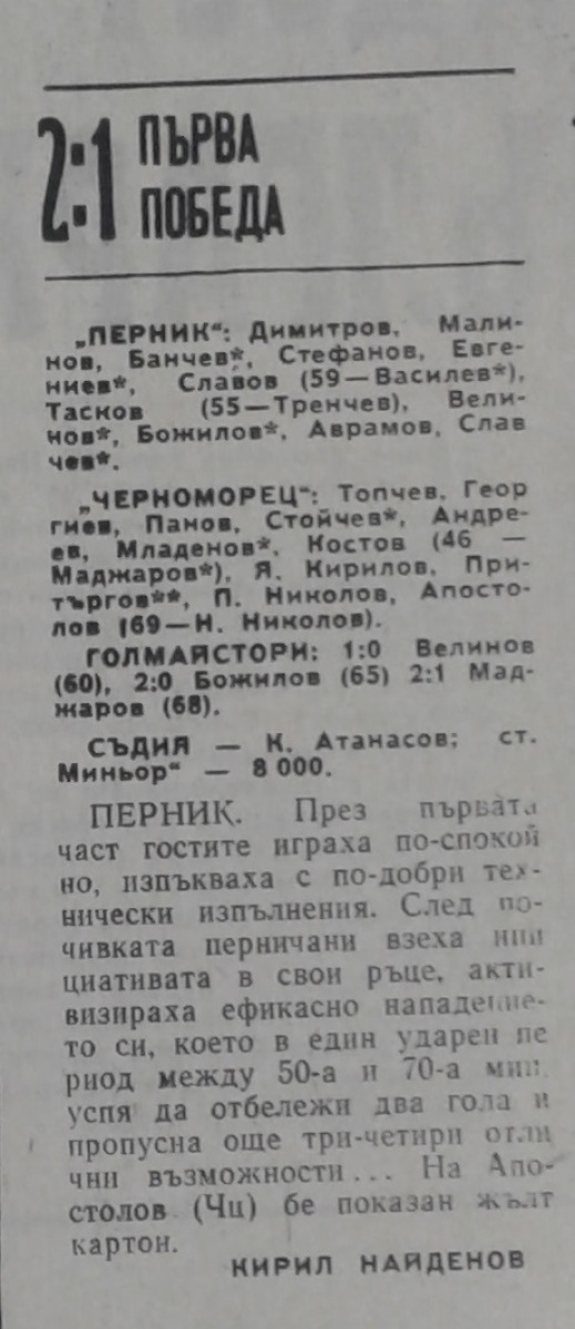 «Перник» Перник - «Черноморец» Бургас - 2:1