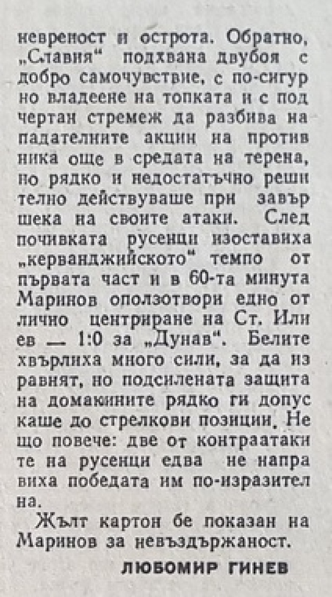 «Дунав» Русе - «Славия» София - 1:0