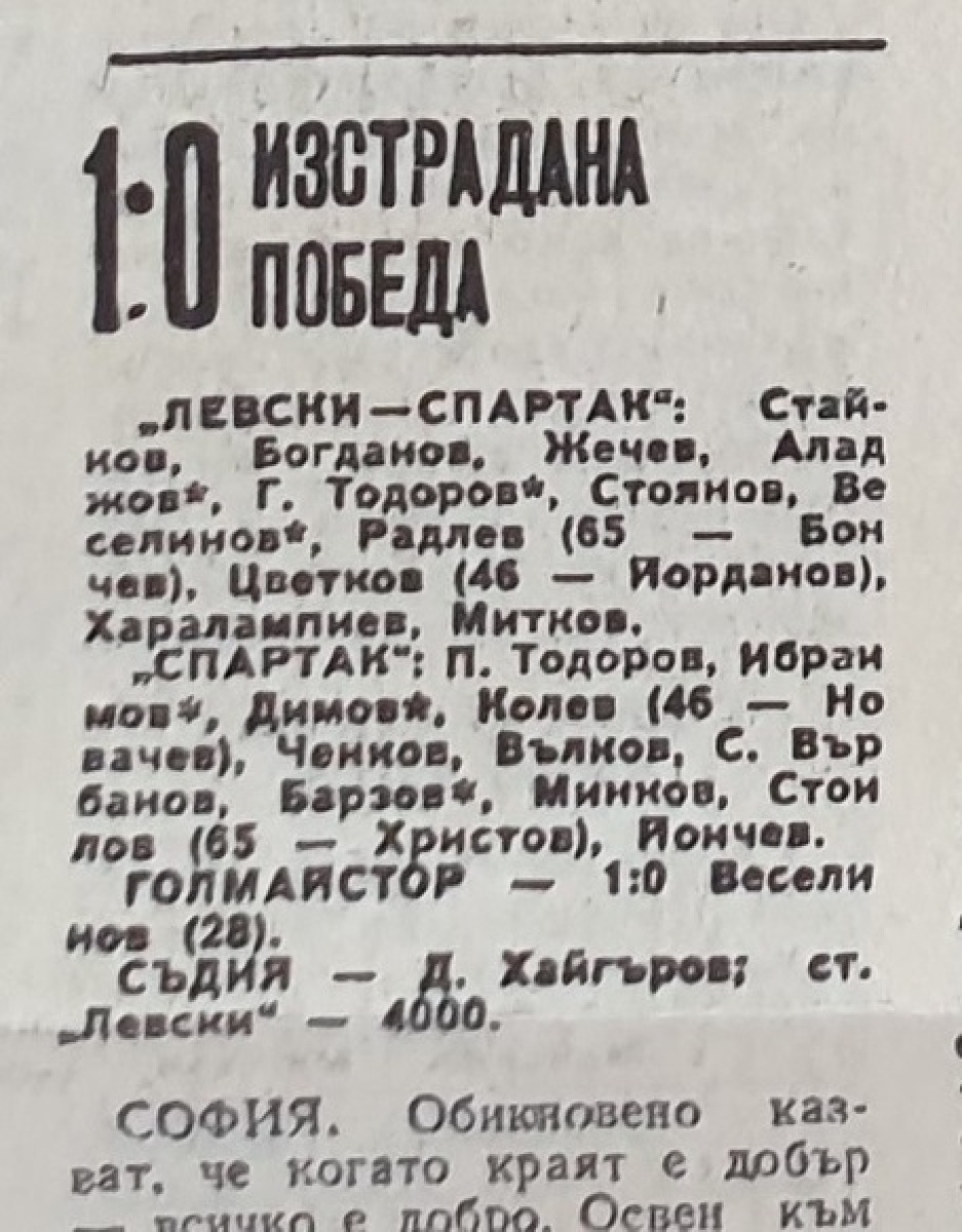 «Левски-Спартак» София - «Спартак» Плевен - 1:0