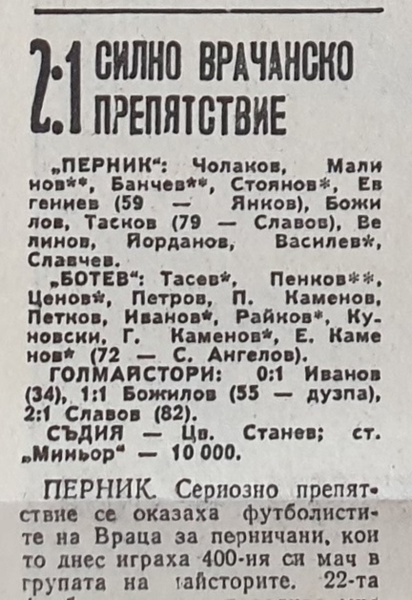«Перник» Перник - «Ботев» Враца - 2:1