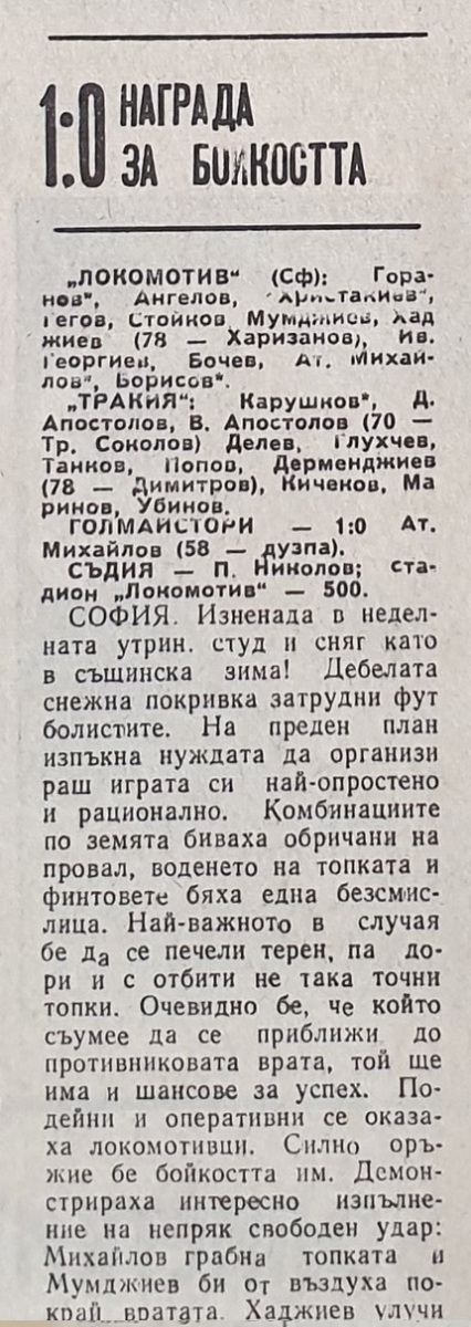 «Локомотив» София - «Тракия» Пловдив - 1:0