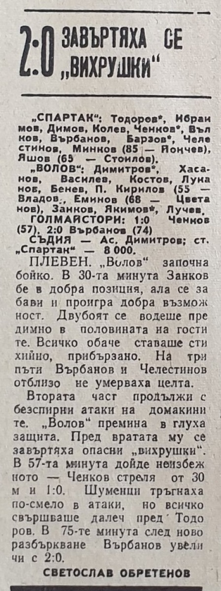 «Спартак» Плевен - «Панайот Волов» Шумен - 2:0