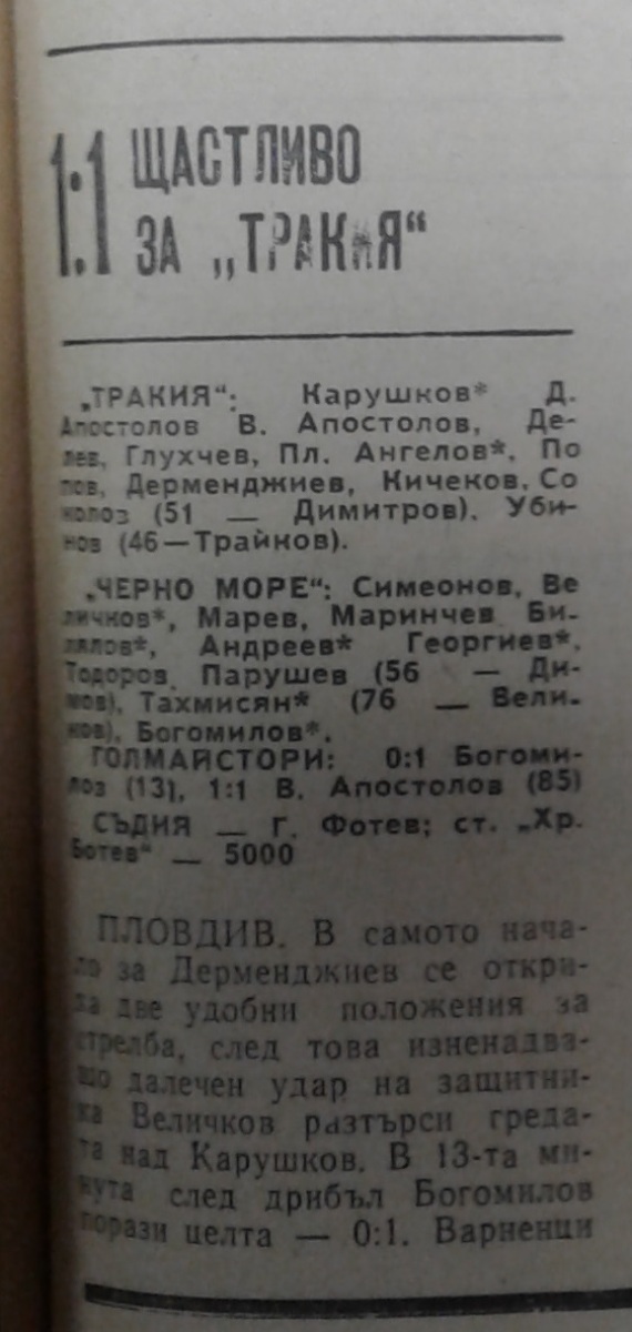 «Тракия» Пловдив - «Черно море» Варна - 1:1
