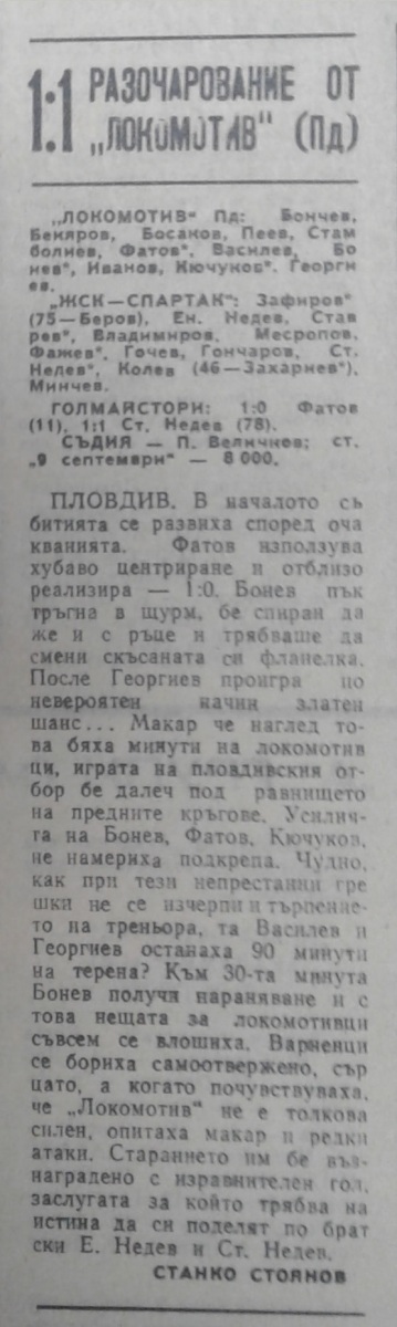 «Локомотив» Пловдив - «ЖСК-Спартак» Варна - 1:1