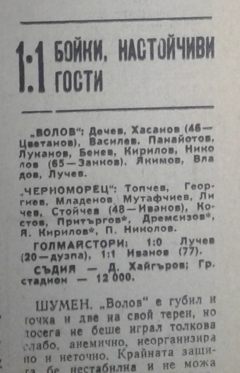 «Панайот Волов» Шумен - «Черноморец» Бургас - 1:1
