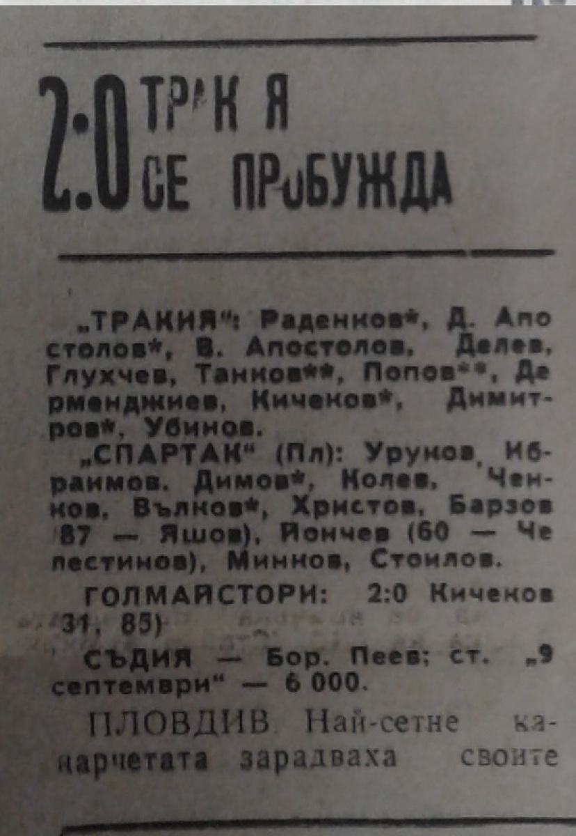 «Тракия» Пловдив - «Спартак» Плевен - 2:0