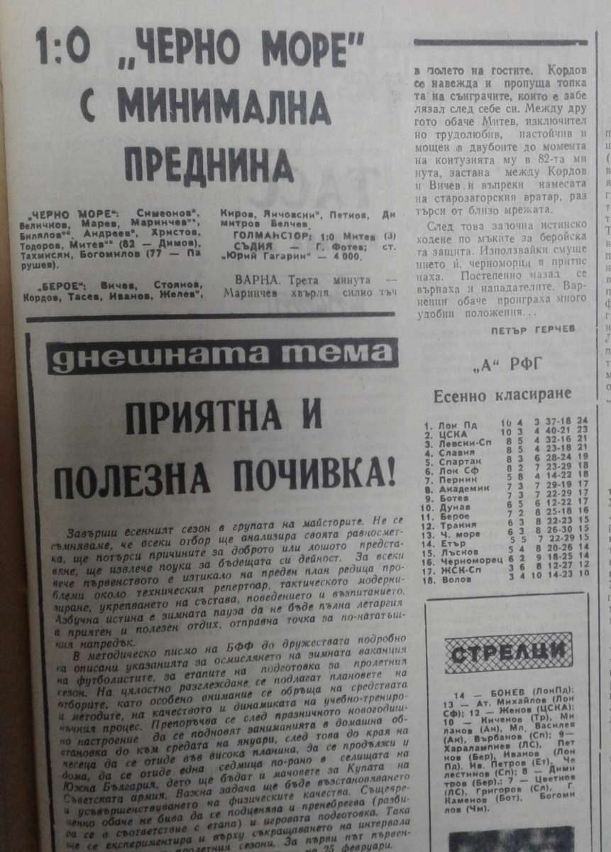 «Черно море» Варна - «Берое» Стара-Загора - 1:0