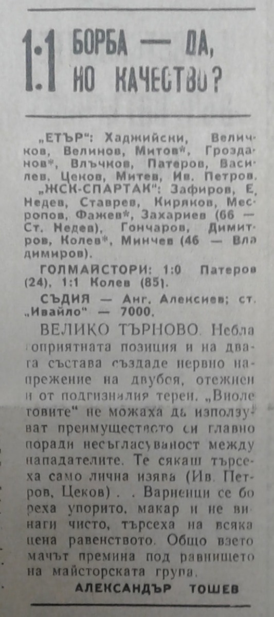 «Этыр» Велико-Тырново - «ЖСК-Спартак» Варна - 1:1