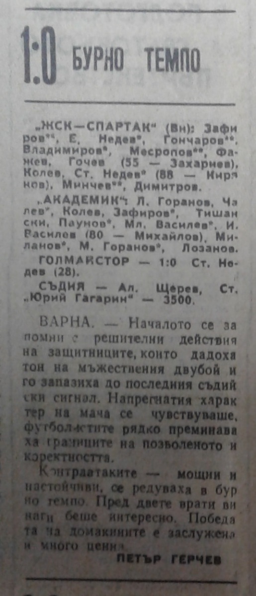 «ЖСК-Спартак» Варна - «Академик» София - 1:0