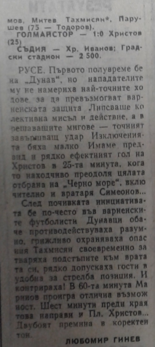 «Дунав» Русе - «Черно море» Варна - 1:0