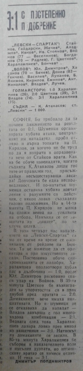 «Левски-Спартак» София - «Панайот Волов» Шумен - 3:1
