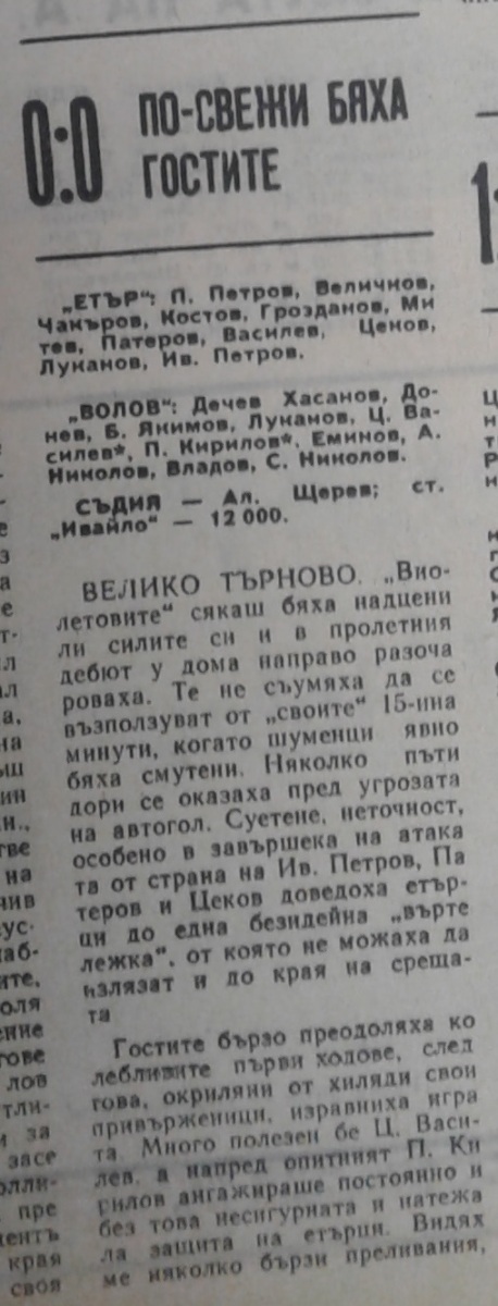«Этыр» Велико-Тырново - «Панайот Волов» Шумен - 0:0