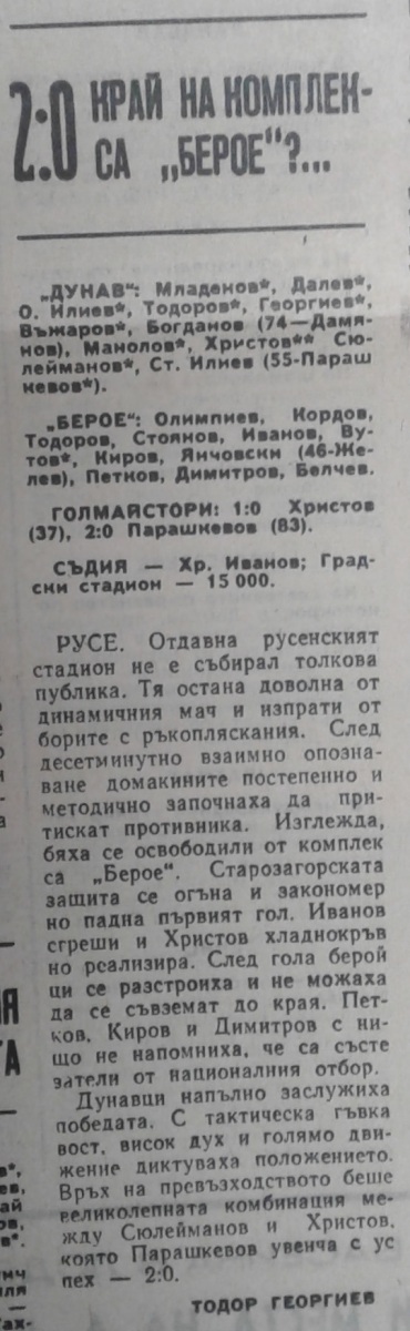 «Дунав» Русе - «Берое» Стара-Загора - 2:0