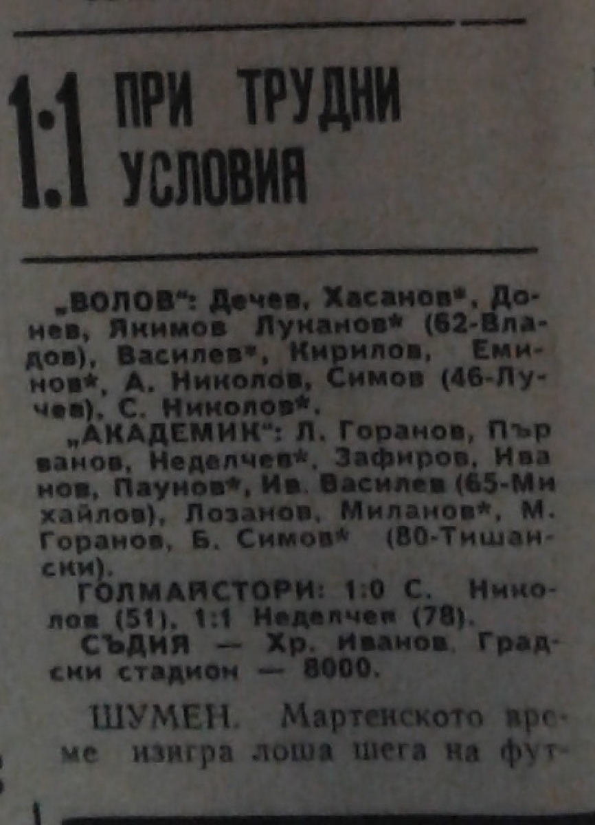 «Панайот Волов» Шумен - «Академик» София - 1:1