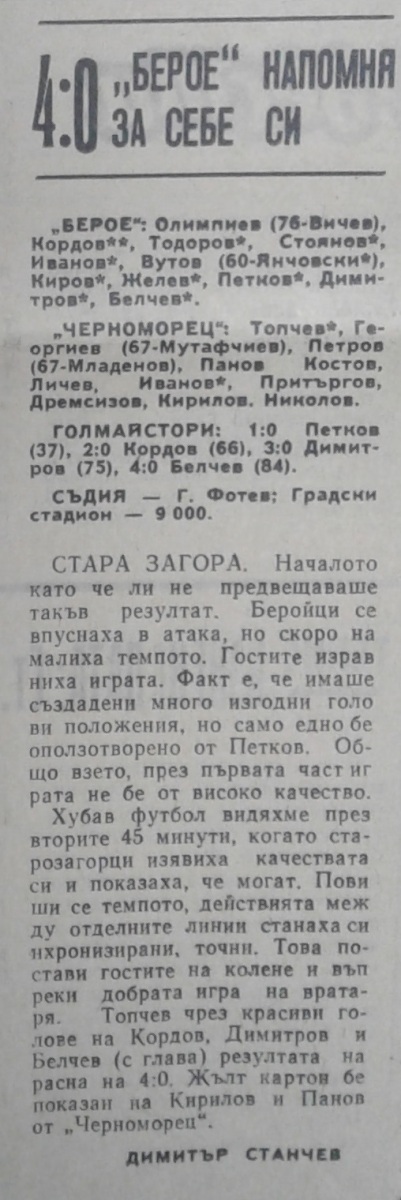 Георги Белчев (Берое) забил свой 50-й матч в А РФГ.