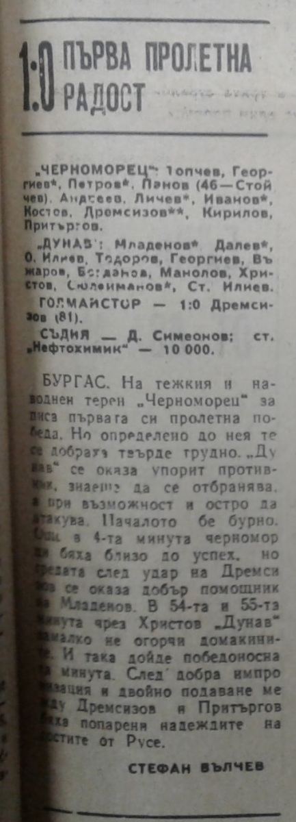 «Черноморец» Бургас - «Дунав» Русе - 1:0