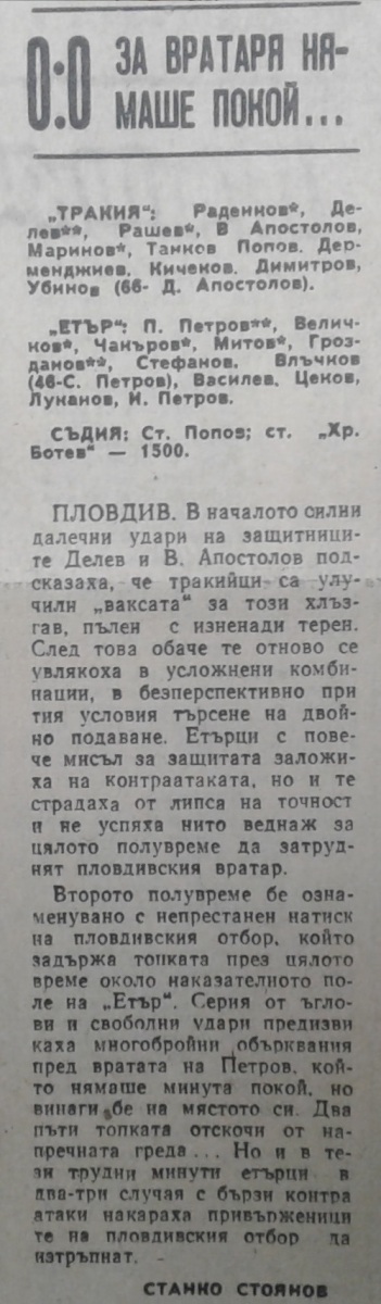 «Тракия» Пловдив - «Этыр» Велико-Тырново - 0:0