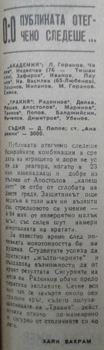 «Академик» София - «Тракия» Пловдив - 0:0