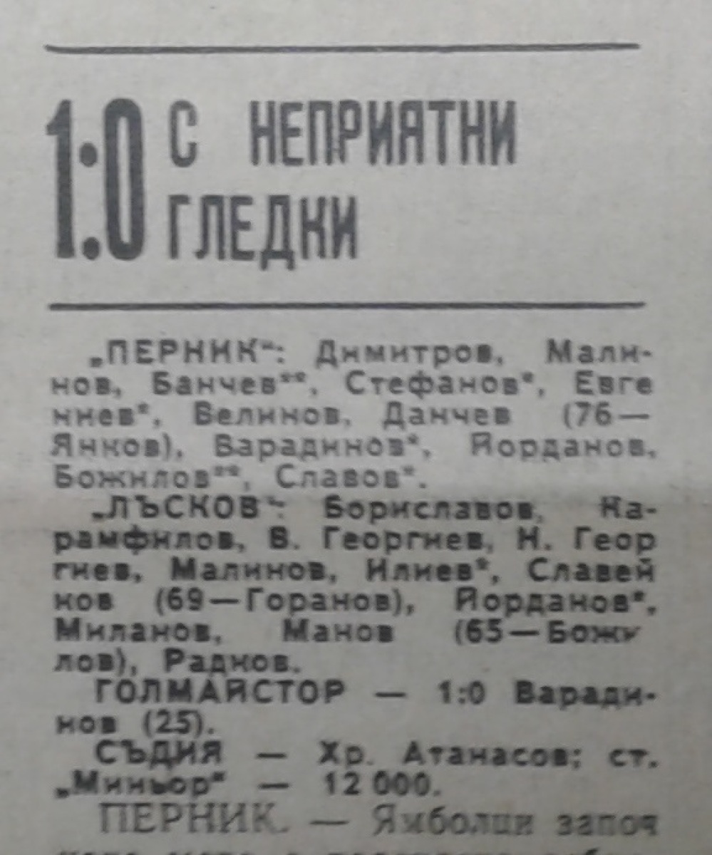 «Перник» Перник - «Николай Лысков» Ямбол - 1:0