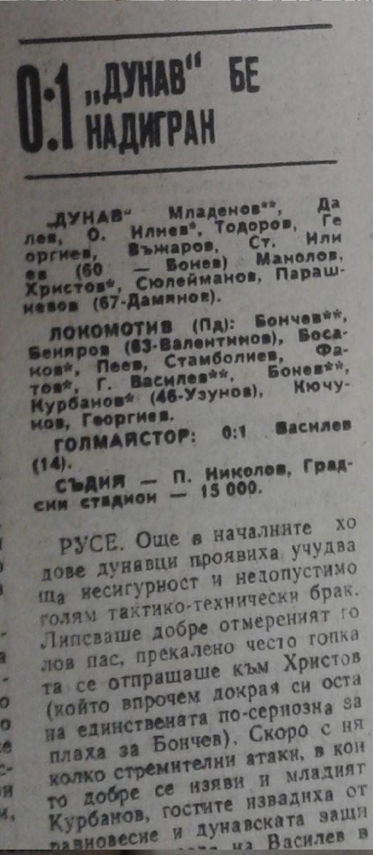 «Дунав» Русе - «Локомотив» Пловдив - 0:1