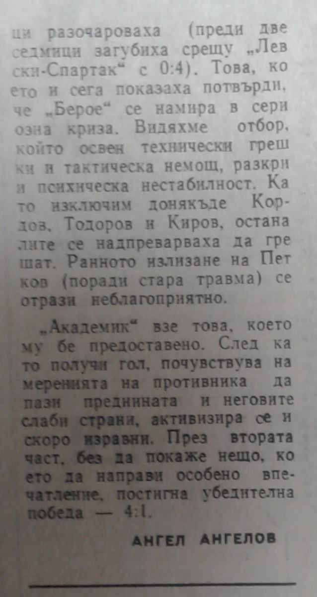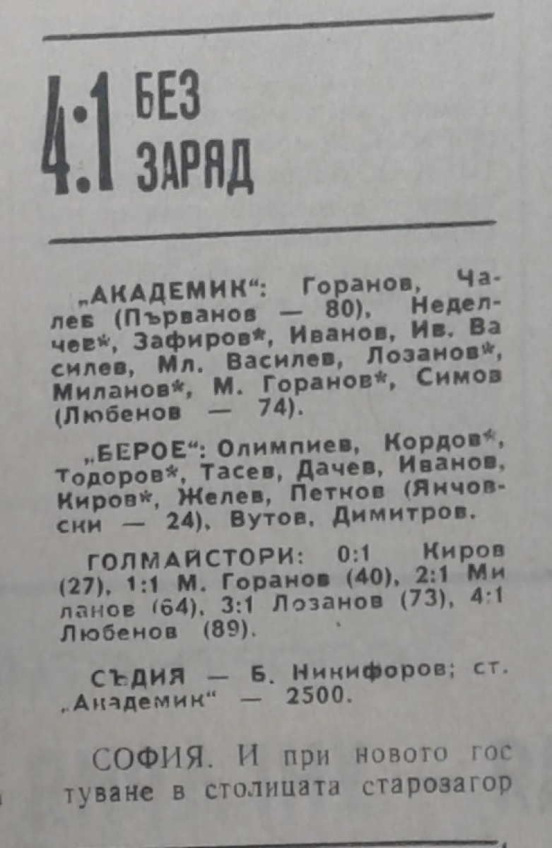 «Академик» София - «Берое» Стара-Загора - 4:1
