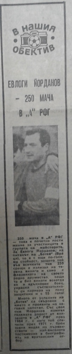 Евлоги Йорданов (Ботев Враца) сыграл свой 250-й матч в А РФГ.