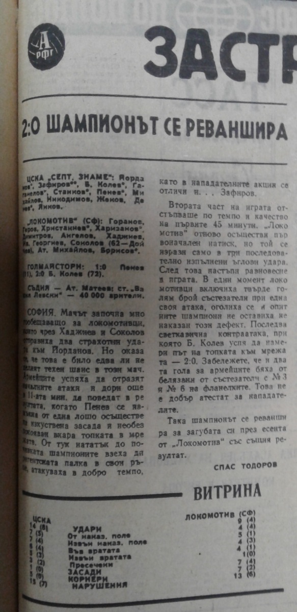 «ЦСКА Септемврийско Знаме» София - «Локомотив» София - 2:0