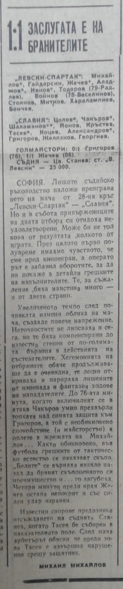 Этот матч сыгранный 16 мая (2:2) по решению Болгарской федерации футбола был переигран 2 июня 1973