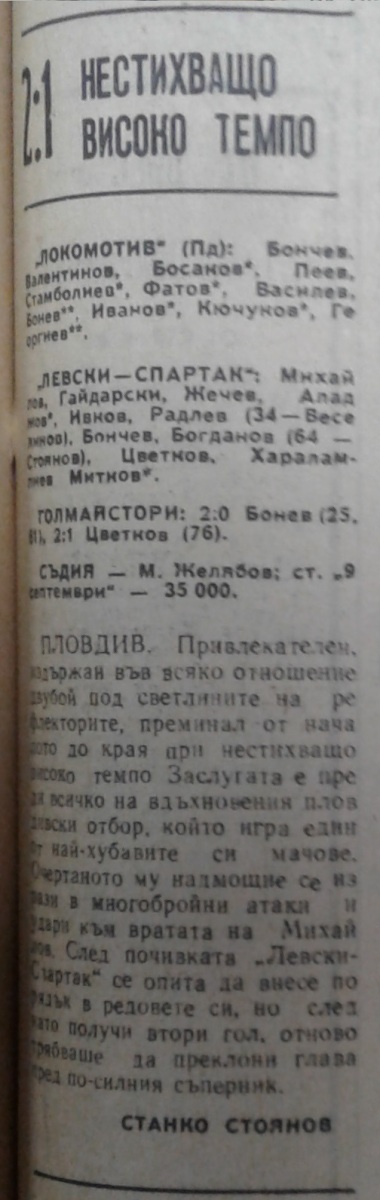 «Локомотив» Пловдив - «Левски-Спартак» София - 2:1