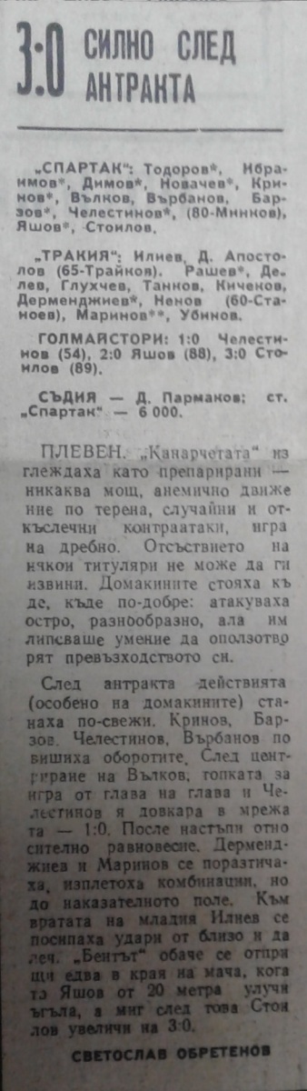 «Спартак» Плевен - «Тракия» Пловдив - 3:0