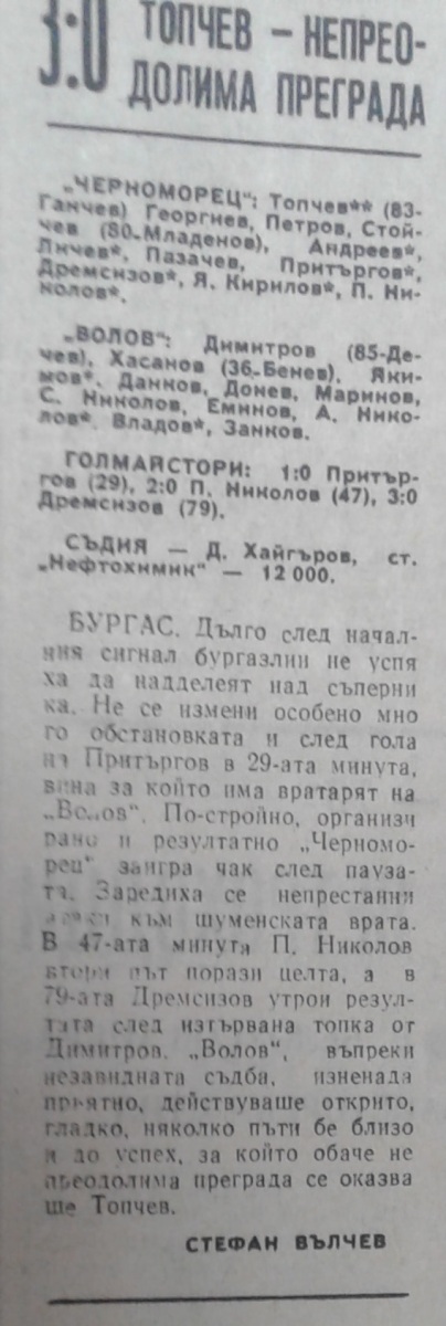 «Черноморец» Бургас - «Панайот Волов» Шумен - 3:0