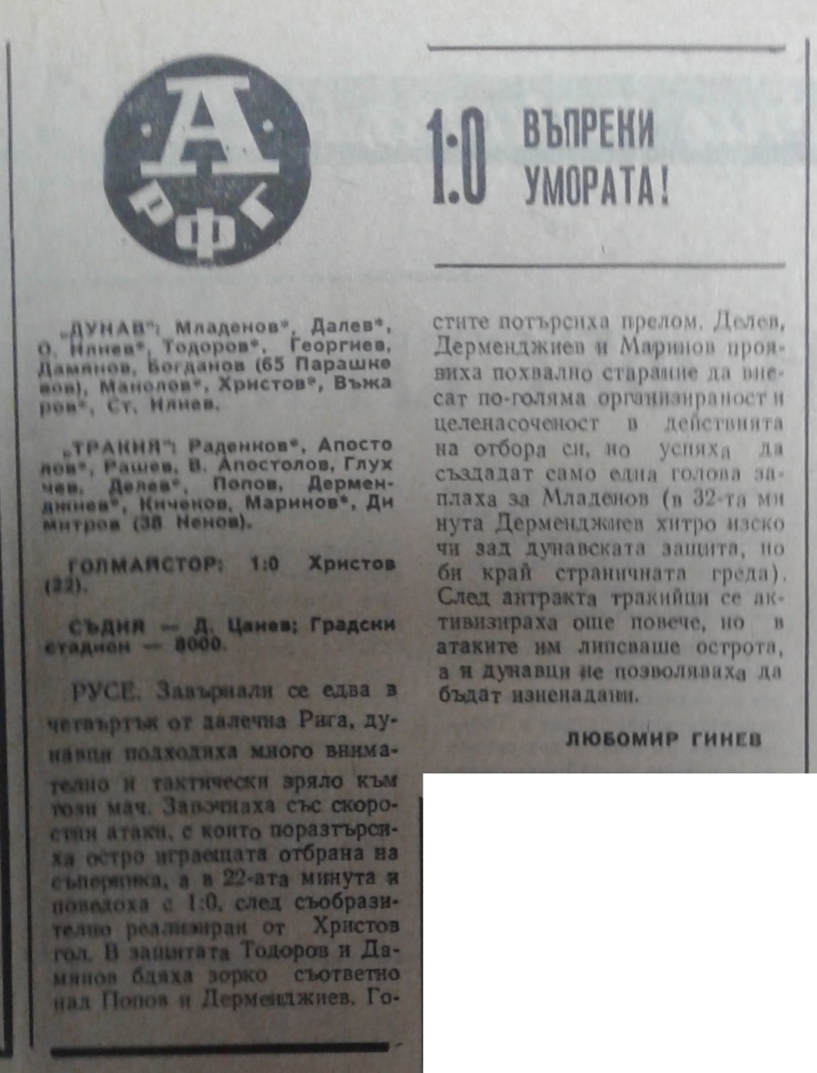 «Дунав» Русе - «Тракия» Пловдив - 1:0