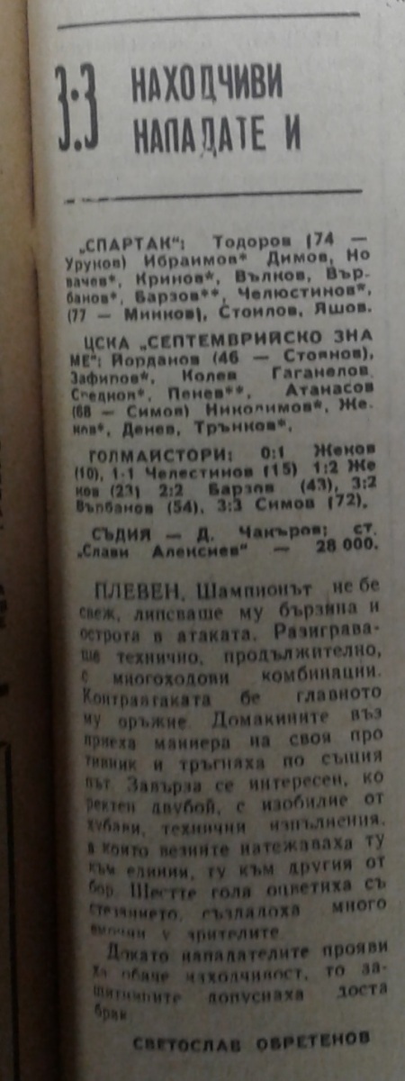 «Спартак» Плевен - «ЦСКА Септемврийско Знаме» София - 3:3