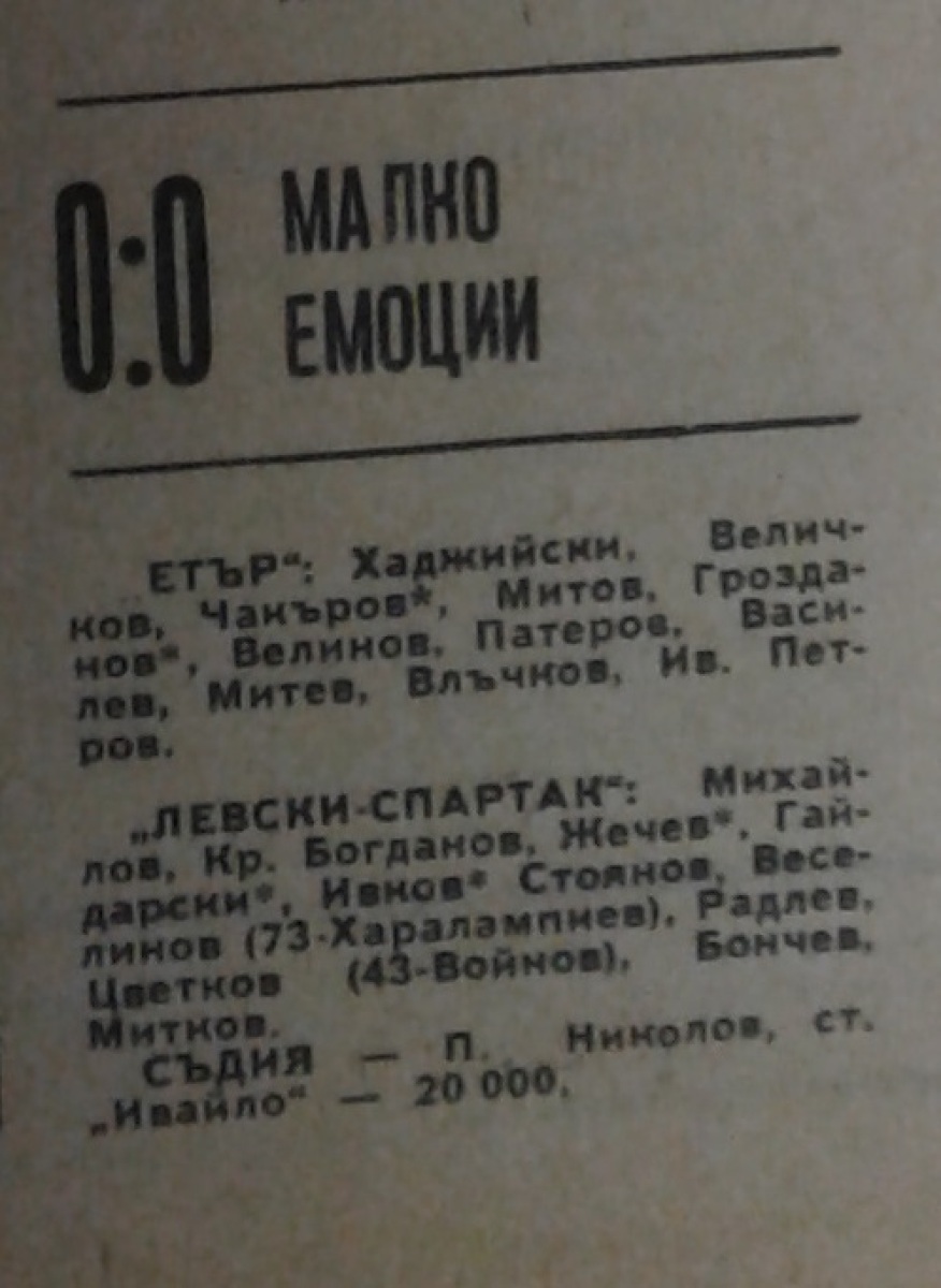 «Этыр» Велико-Тырново - «Левски-Спартак» София - 0:0