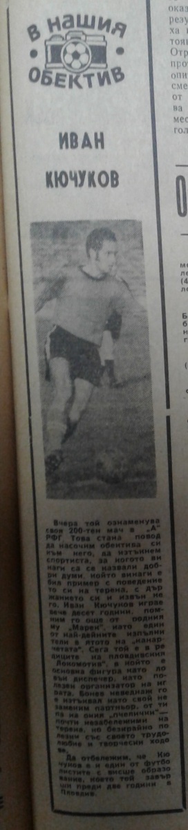 Иван Кючуков (Лок. Пловдив) провёл свой 200-й матч в А РФГ.