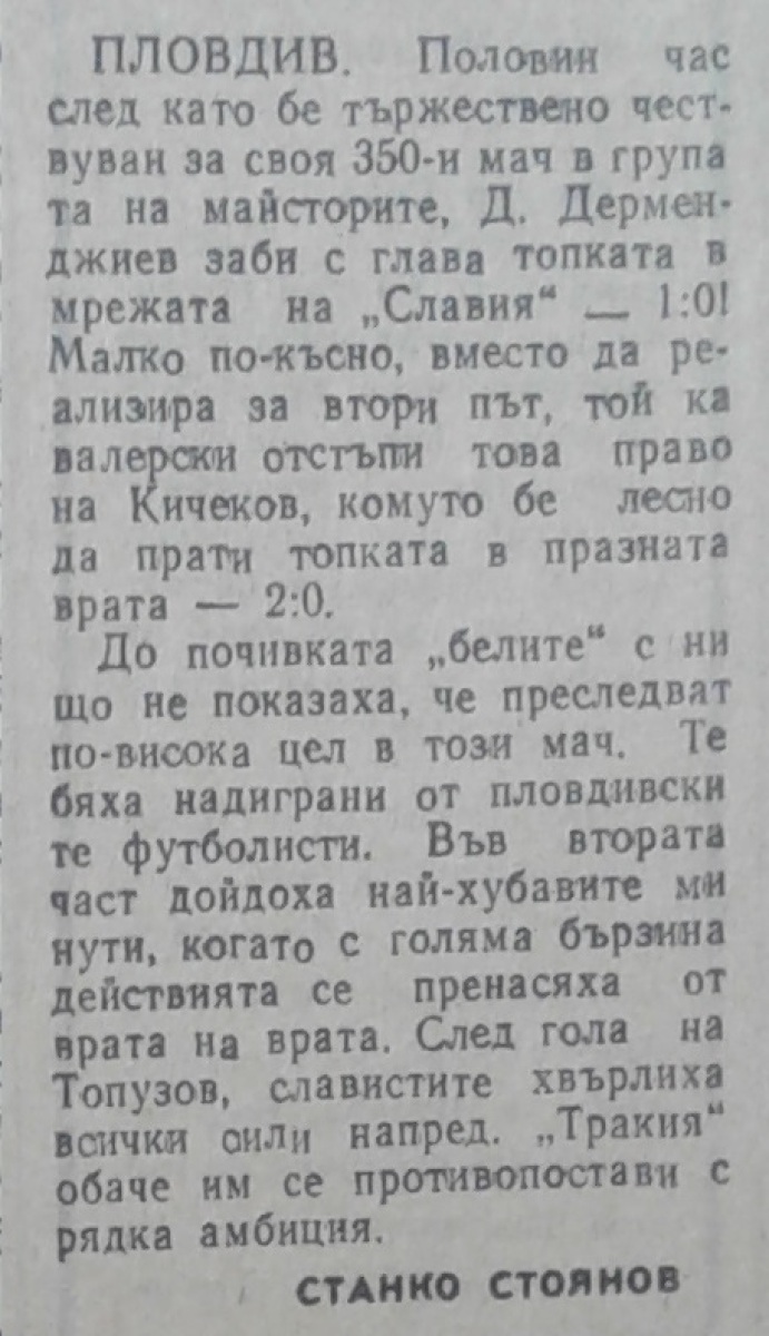 Динко Дерменджиев (Тракия Пловдив) провёл свой 350-й матч в А РФГ.