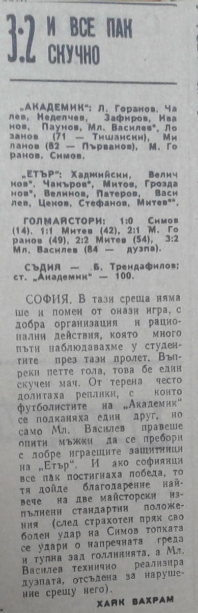 «Академик» София - «Этыр» Велико-Тырново - 3:2