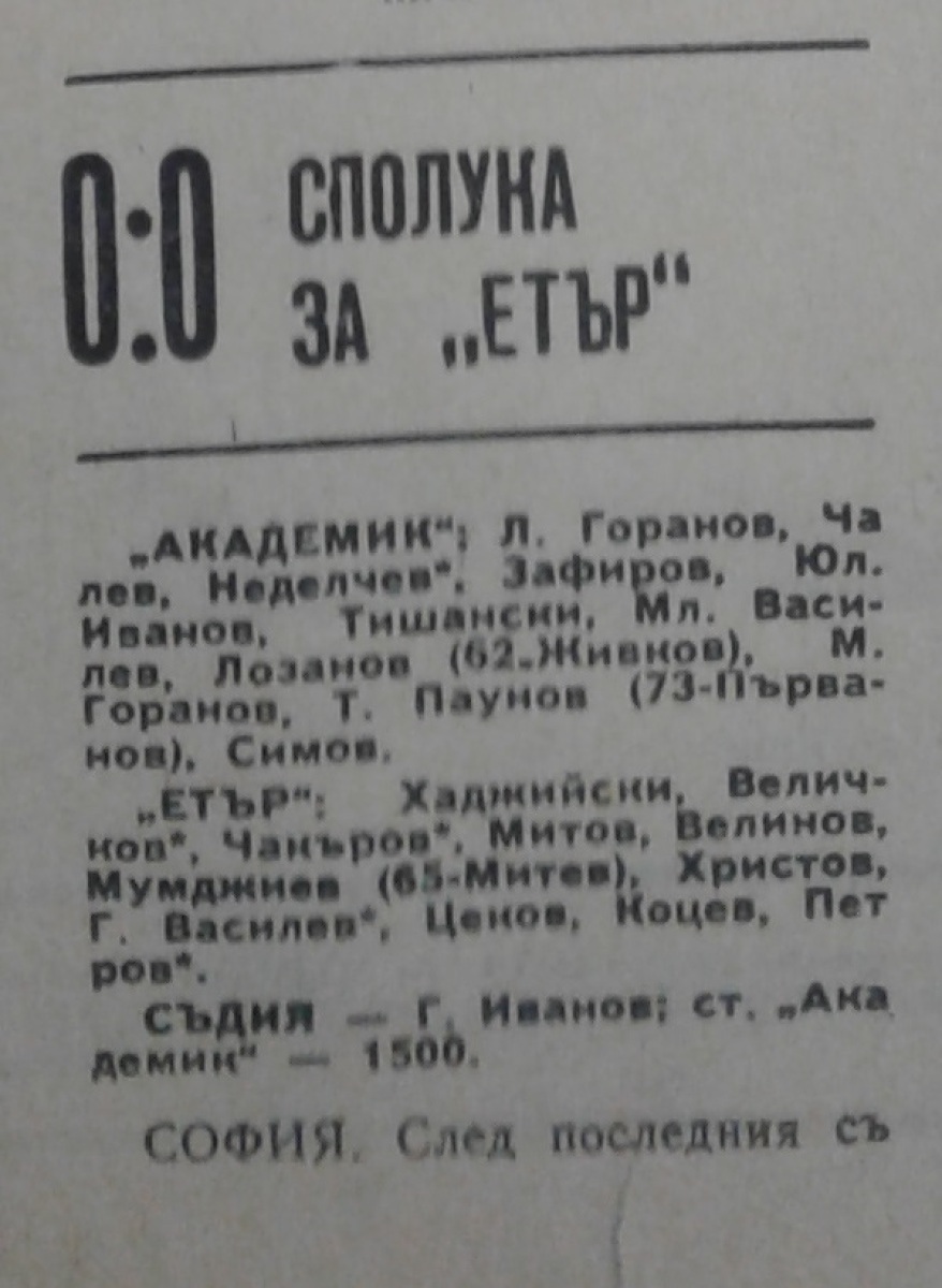 «Академик» София - «Этыр» Велико-Тырново - 0:0