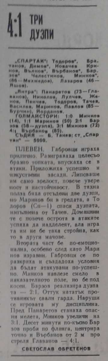 «Спартак» Плевен - «Янтра» Габрово - 4:1