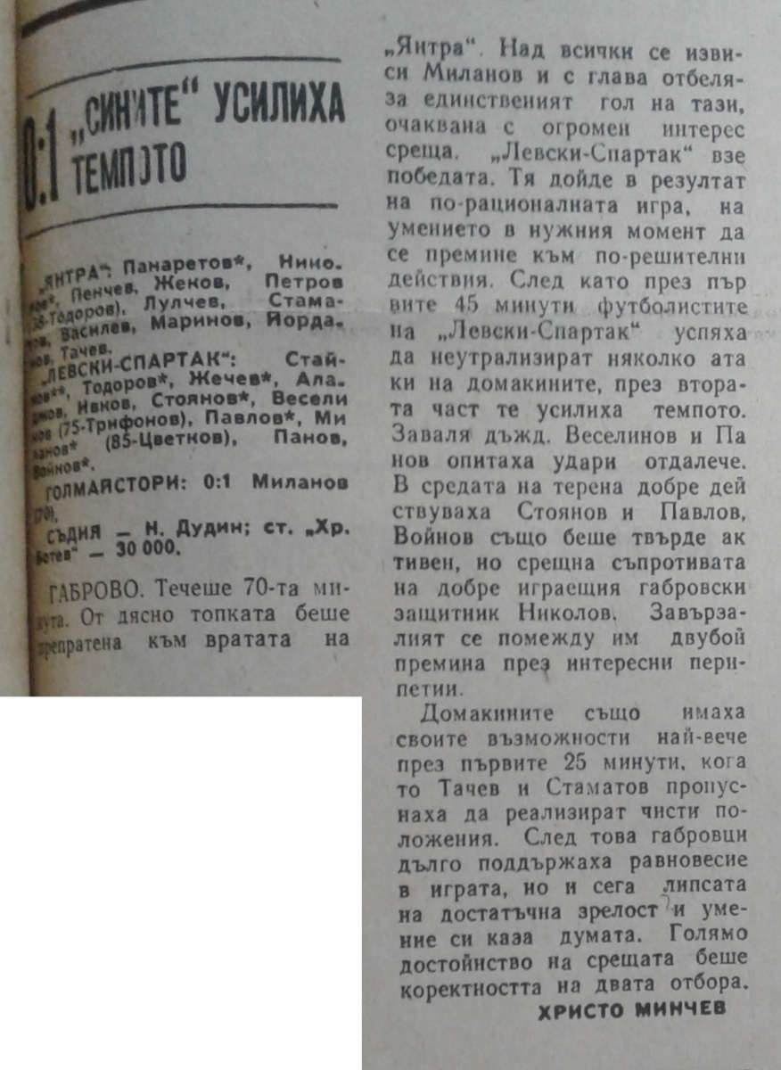 «Янтра» Габрово - «Левски-Спартак» София - 0:1