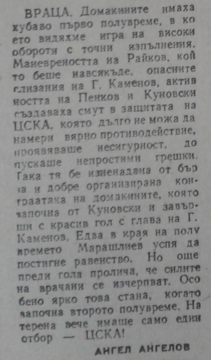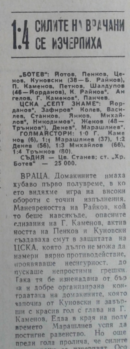 «Ботев» Враца - «ЦСКА Септемврийско Знаме» София - 1:4
