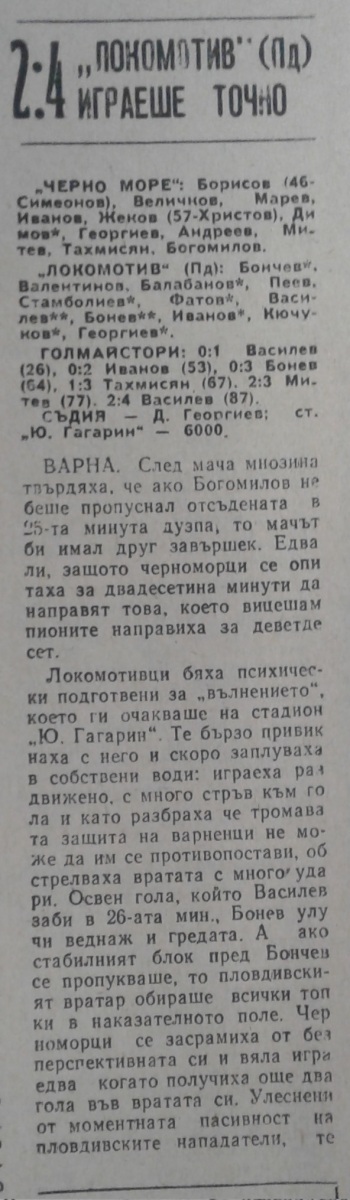 «Черно море» Варна - «Локомотив» Пловдив - 2:4
