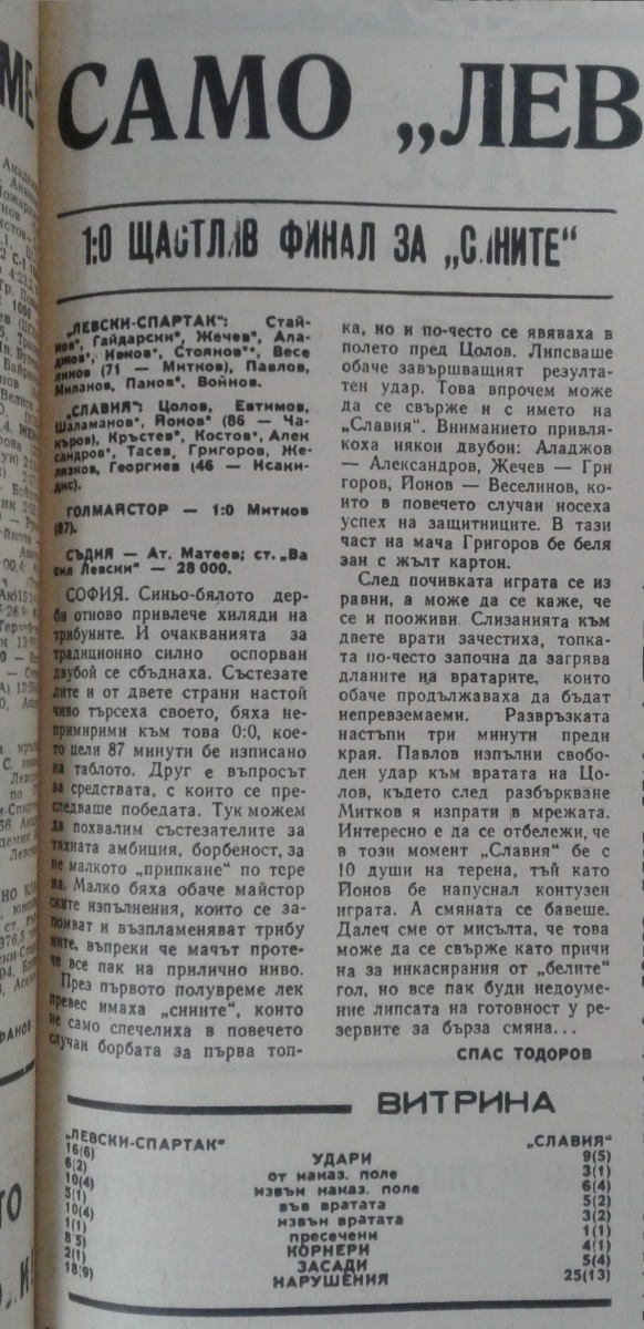 «Левски-Спартак» София - «Славия» София - 1:0
